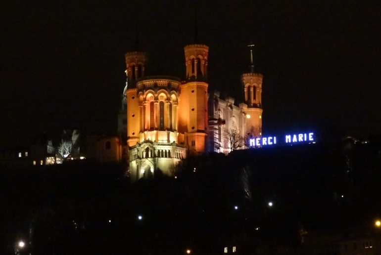 И неизменно над празднеством царит прекрасный собор Нотр-Дам-де-Фурвьер, символ защиты и покровительства Пресвятой Девы: