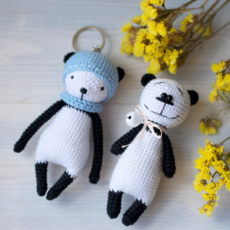 Панды брелки. Вязаные игрушки ручной работы (на заказ)
