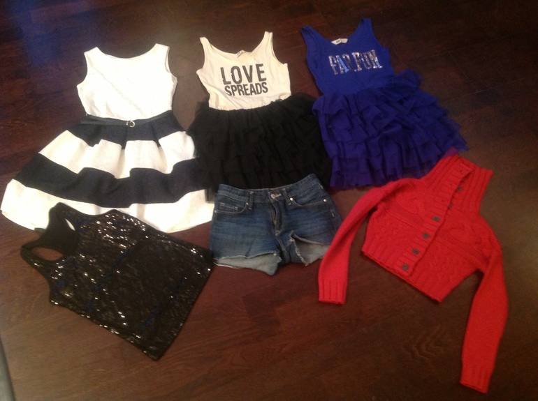 Свитер -300. кофта серая - 200. Кофта белая -200. Бомпер -300. Рубашка -300. Футболка -100. Сарафаны синий и белый по 400. Платье -500. Кофта укороченная -200. Майка -100. Шорты-200. Пакетом делаю скидку.