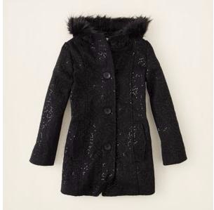Пальто ChildrensPlace с пайетками и мехом (демисезонное) на рост 124-130