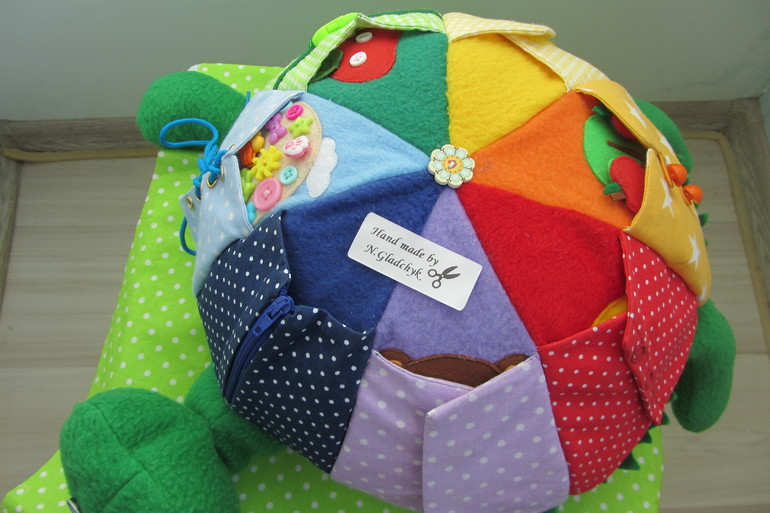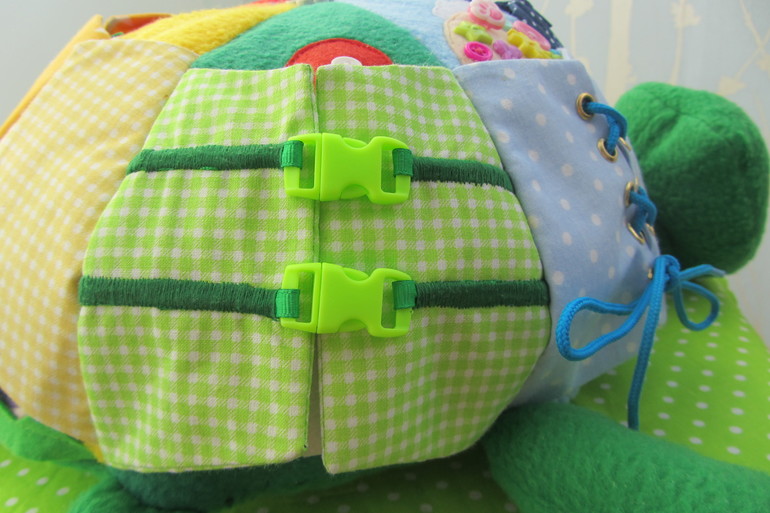 Развивающая черепашка с различными застежками и заданиями.