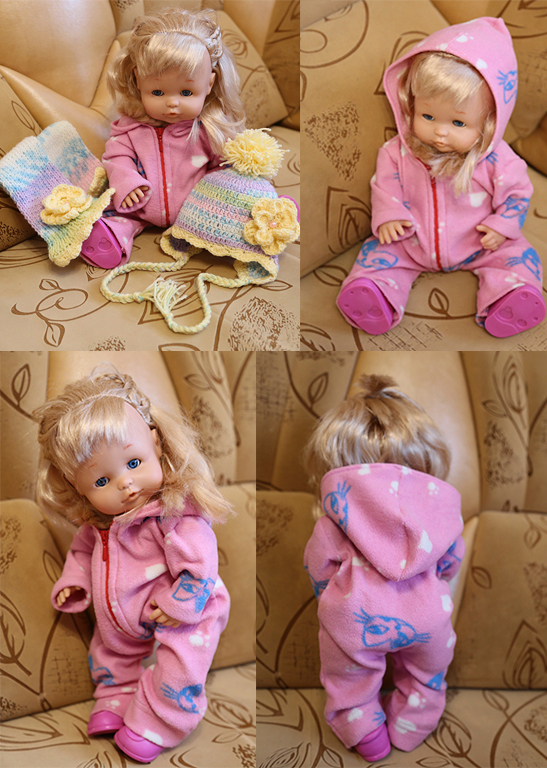Играем в куклы с дочками. Утеплили с Настюшкой ее Наташу =) Теперь почти готовы к выходу на улицу =) Связалась шапочка шарфик, а мамины флисовые пижамные штаны превратились в тепленький комбез =)))))