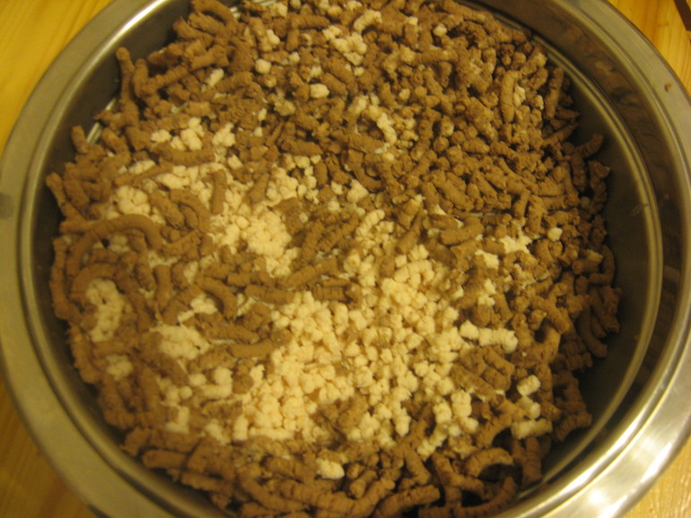 грибы шампиньоны или белые отварные - мелко-рубленные 2-3 столовые ложки ( кто грибы не любит, не добавляет)