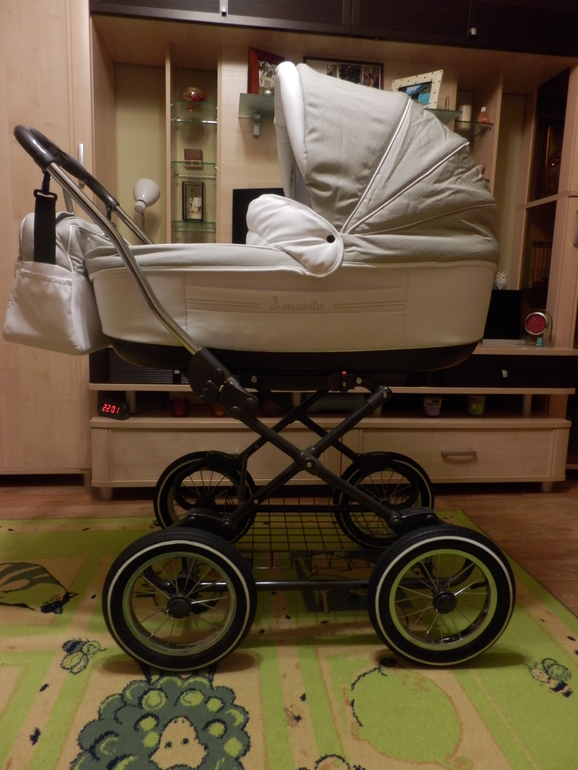 Надувные колеса, хромированная рама. Регулируемая спинка в люльке.