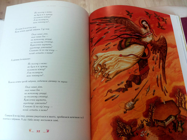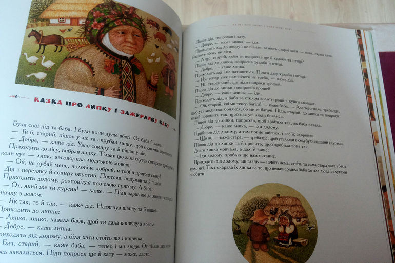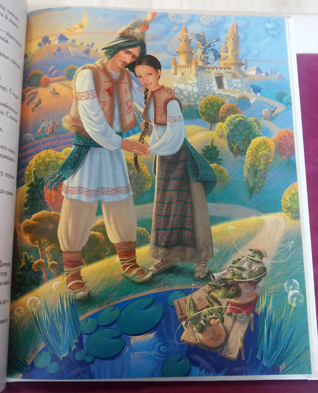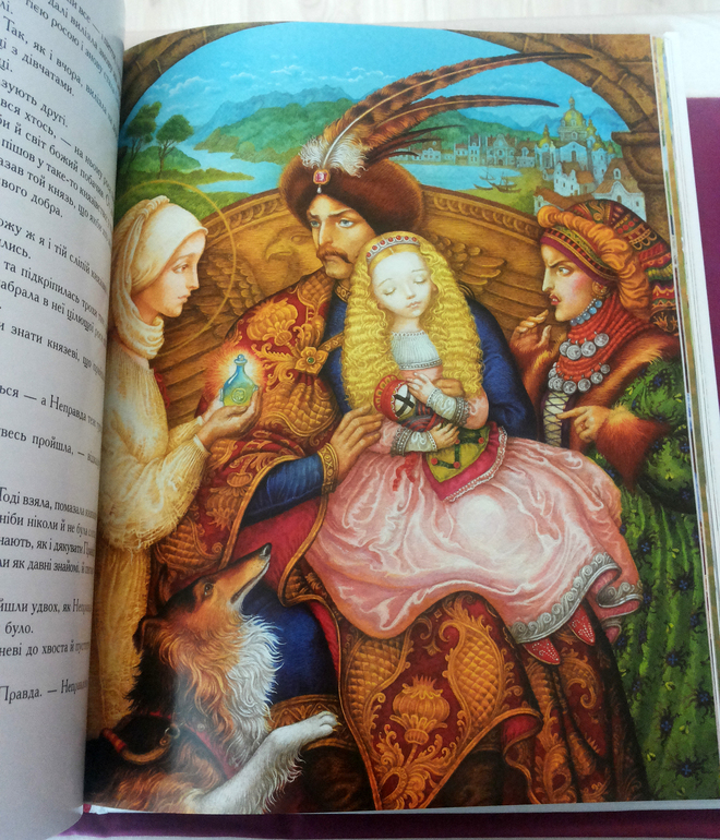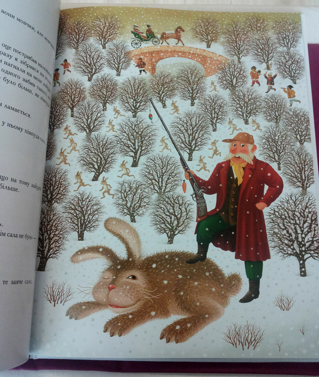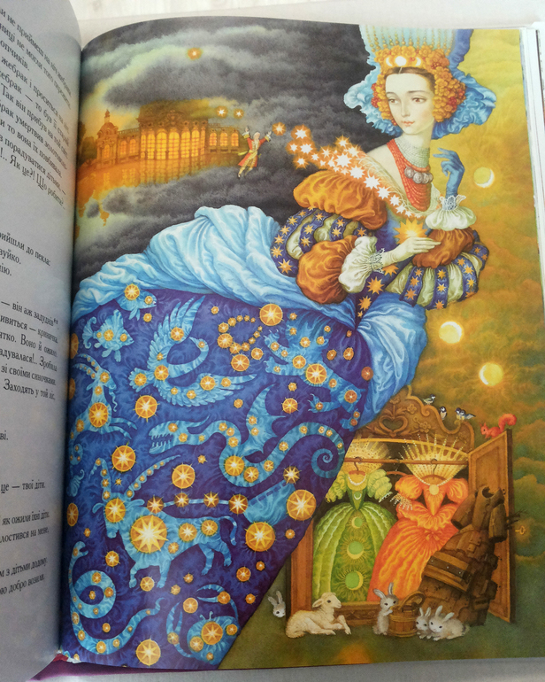 Красочная,яркая,картинки такие,что хочется просто залезть во внутрь этой сказки. Скажу честно цена кусалась и была примерно 125 гривен.Я на тот момент не сильно интересовалась детскими книгами и не знала, что цены повысились на все даже на литературу. Короче говоря ушла тогда я с магазина без книги. Жалела денег. Думала стоит ли покупать такую дорогую книгу найти что-то дешевле! На работе поделилась с подругой своей находкой.(У нее самой дочери 5 лет и она иногда интересуется литературой) И так случилось,что она намотала себе на ус,и на Рождество подарила мне первый том книги.Вы не представляете себе приделы моей радости! И рождественский вечер мой сыночек живший еще в пузике услышал первую сказку.