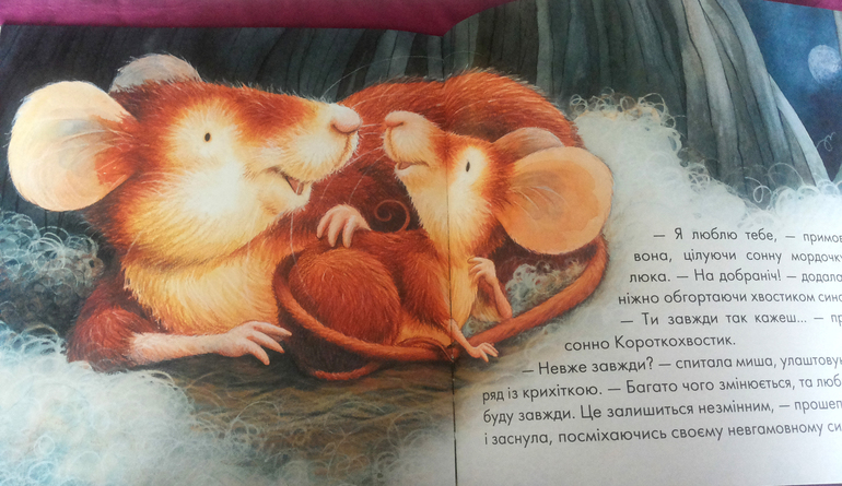 Взяла одну книгу про маму мышку,а что бы мужу не было обидно,что все книги накупила про мам,купила еще "Я хоробрий ,як тато". И осталась довольна,кстати муж тоже.Видно было в его глазах, что он себе уже представил как будет читать ее сынульке.
