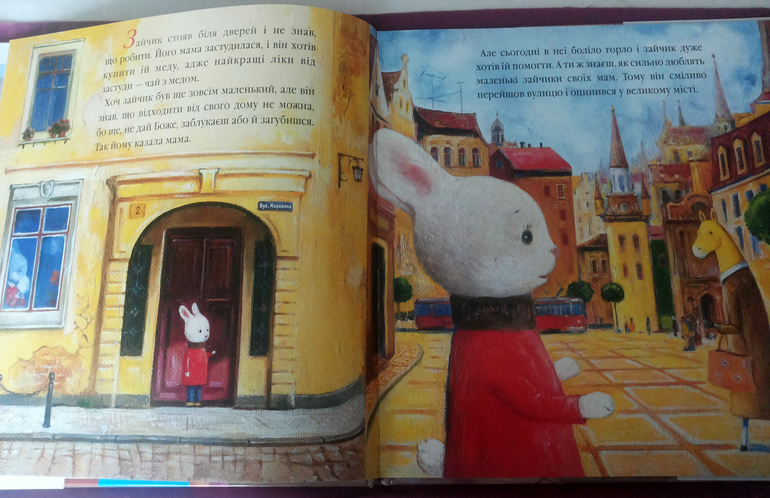 Трогательная история,волнительная о зайченке ,который пошел искать мед для болеющей мамы и заблудился в большом городе. Прекрасные иллюстрации Софии Ус.Книга пропитана любовью и заботой друг о друге! Учит безопасности и доброте к близкому! Настолько теплая,нежная, приносит в душу умиротворение.Я когда читала ее Сашульке когда он был еще в животике в конце у меня становится ком в голе и набираются на глазах слезы.Я думаю,что когда-то мой сынок спросит меня почему я плачу когда читаю. А я плачу реально только читаю хорошие книги.Те которые берут за душу и не отпускают долгое время.Книги которые не забываешь текст спустя закрыв книгу.Эта книга вполне подойдет для семей которые соблюдают традиции чтения перед сном,после игр, купания.Вот так вот.