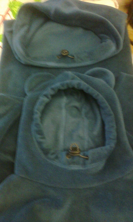 Размер универсальный, только в таком размере эти капоры бывают. Прорези для лица у обеих шапок регулируются кулиской, что гарантирует более плотное прилегание к лицу, служит для регулировки объема шапки и защищает голову от продуваний. У капора малыша две кулиски. Вечером смогу выслать фото как выглядит капор не на голове
