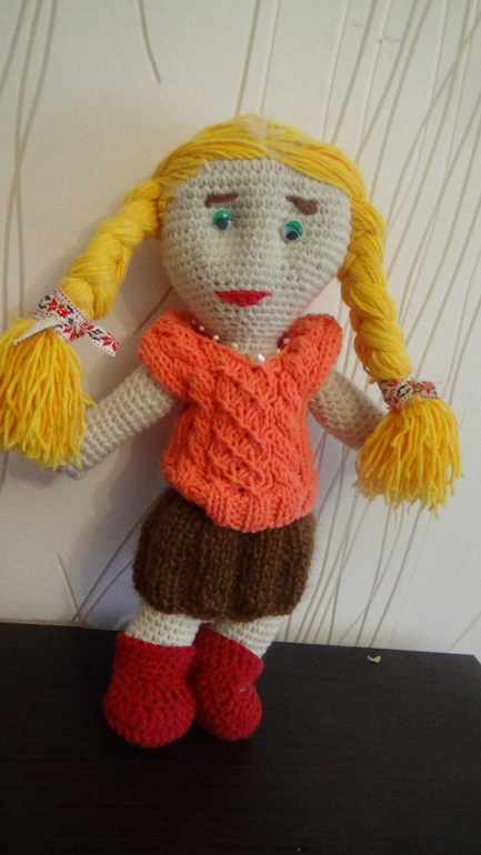 Сама кукла связалась быстро и легко, на одном дыхании. А вот одеть куклу и создать ей лицо оказалось для меня проблемой.