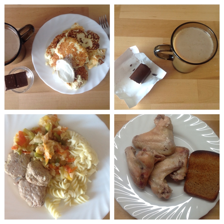 1. Ленивые сырники, сметана, кофе, шоколад - 2 дольки