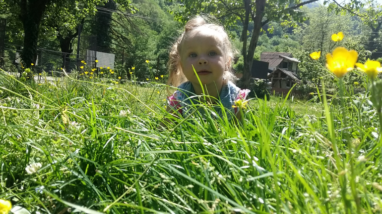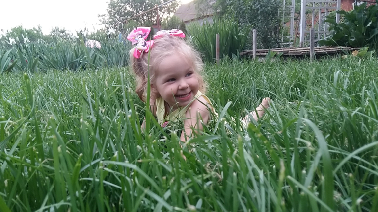 что бы прадедушка смеялся Ариша специально падала в травку) и хохотала)