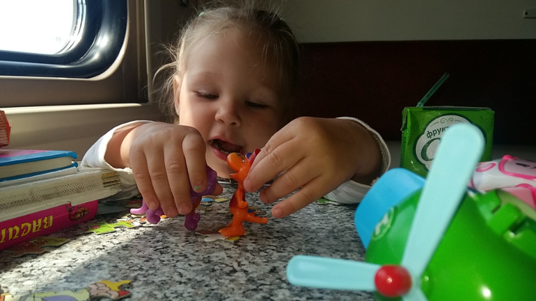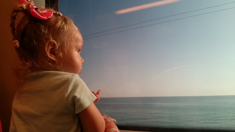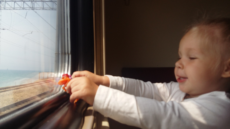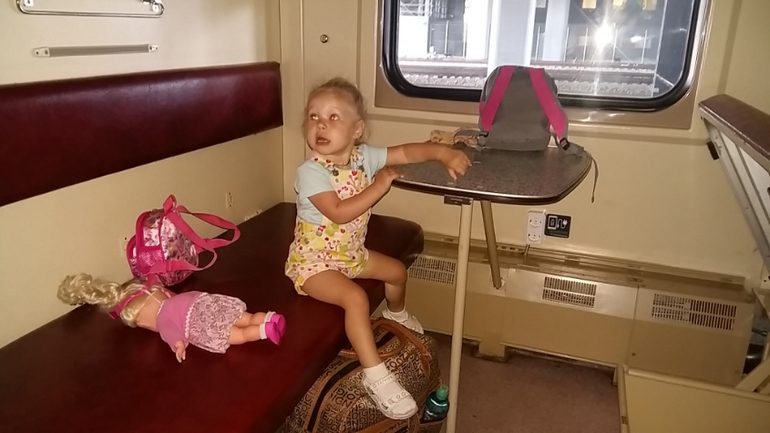 Мы наконец то поеали к Ваниным родителям в Славянск-на-Кубани . Арина с открытым ртом в поезд вошла и долго сидела разглядывала! Даже спросила , можно ли погладить поезд ☺️ к поездам у нас любовь большая! Ехалм 6 часов , тихо и без ругани , даже поспали ))
