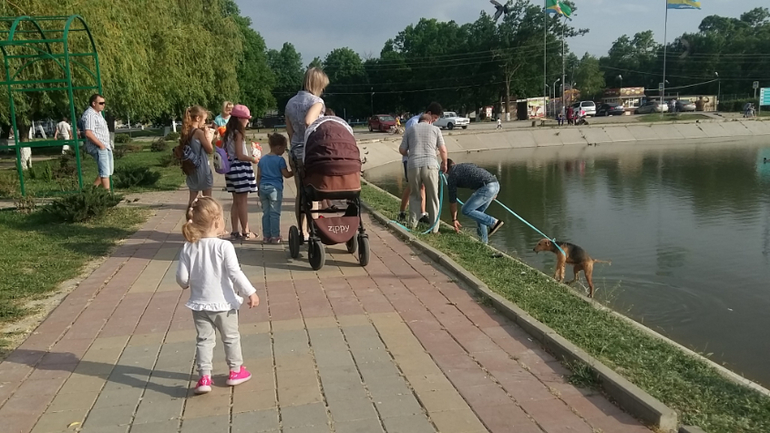 наблюдала за спасением собачки и рвалась ей помочь сама! Говорила что надо собачке помочь!!!!!