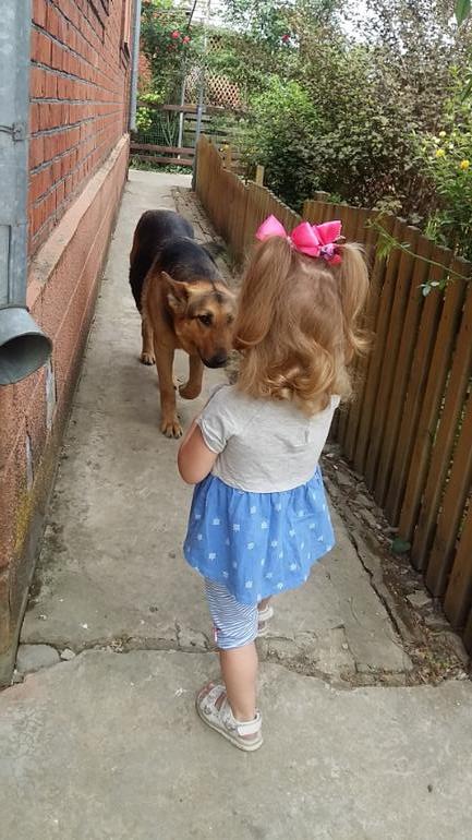 А это Рыська-кошка и Ника-собака , Ника бегала за нами следом и кнопа за ней тоже)) кошка беременна вроде , сильно не дается тискаться никогда но Арине разрешала себя гладить и не убегала.