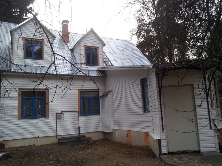 Дом странной формы. Такое впечатление что хозяин постепенно достраивается когда перестает хватать места