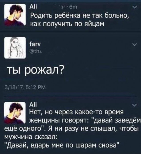 А что, я за, чтобы в результате битья по яйцам вылуплялся ребёнок 🤔тогда можно было бы мужу заявить усё, любимый, второго рожаешь ты 👍😁