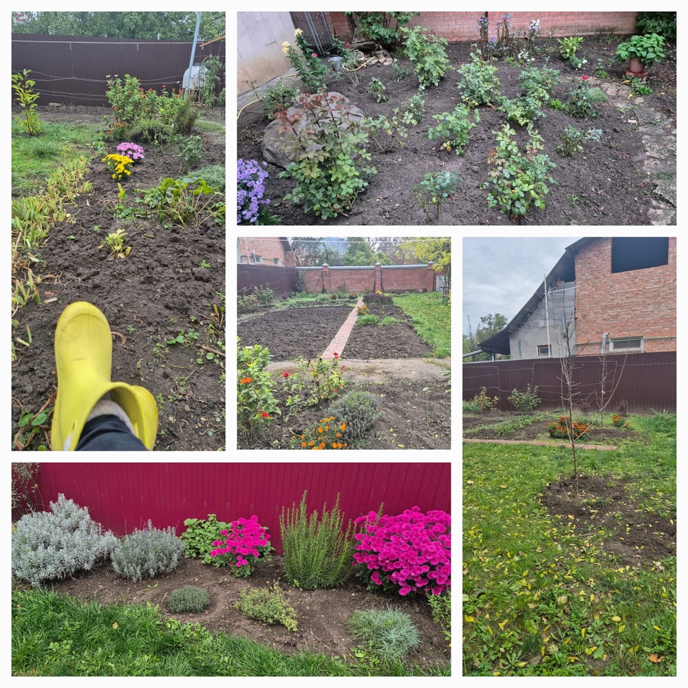 мама с катей в конце сентября закатились в кисловодск на бархатный сезон, я за это время спокойно, без пиздежа под ухом привела в порядок оба сада: убрала однолетники, свернула огороды, собрала дозревать в яблоках остатки помидоров, разметила землю для копки, подрезала многолетники, малину, кампсисы, виноград, подсадила маме клубнику, себе яблони, восстановила поголовье роз.