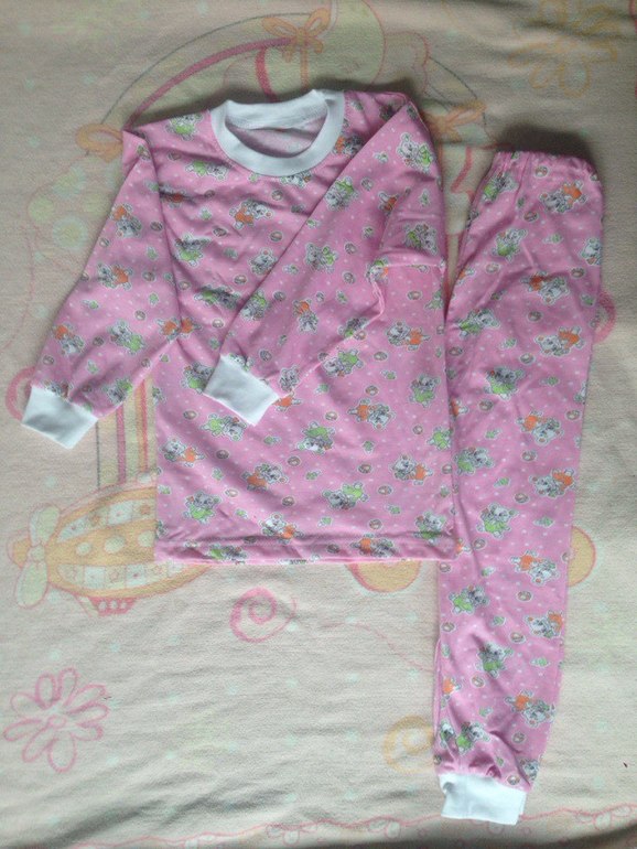 Детская пижама. Манжеты на рукавах и на брючках. Пижама изготовлена из тонкого трикотажного полотна- КУЛИРКА. Приятная на ощупь, хорошо впитывает влагу, сохраняет яркость цвета.
