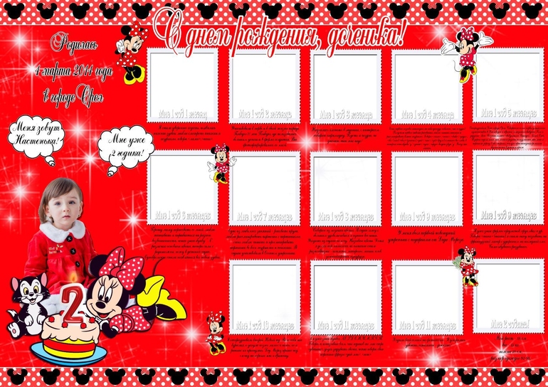 Милым подарком родителям новорожденного станет детская метрика для мальчика или для девочки. На ней изображается информация об имени, дате и времени рождения, весе и росте.