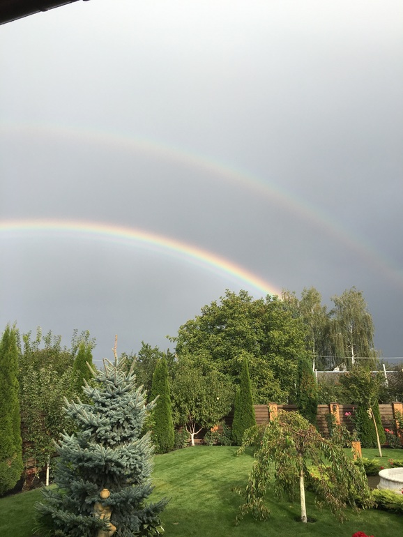 Сегодня вот такое чудо-двойная полная радуга появилась над нашим домом:)