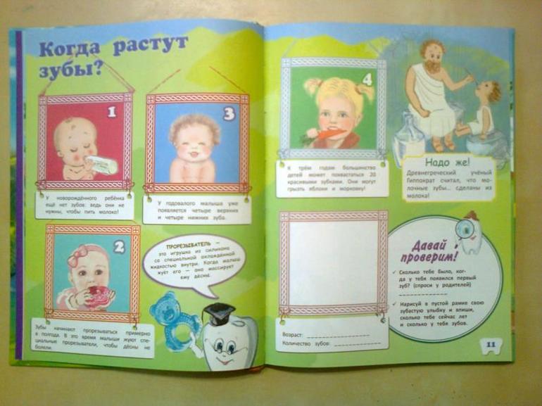 1) Рассказывается о том, что такое для зубов на самом деле жевательная резинка, сладкие продукты, газированная вода и пр. Подробно и запоминается. Это я до беременности думала, что все мамы в курсе здорового питания, а так постоянно вижу двухлеток с чупа-чупсами и прочей дрянью. И очень здорово, что кто-то догадался написать об этом в книге для малышей. Конечно, сладкое должно быть в жизни и ребенка, и взрослого, но дозированно и хорошего качества.