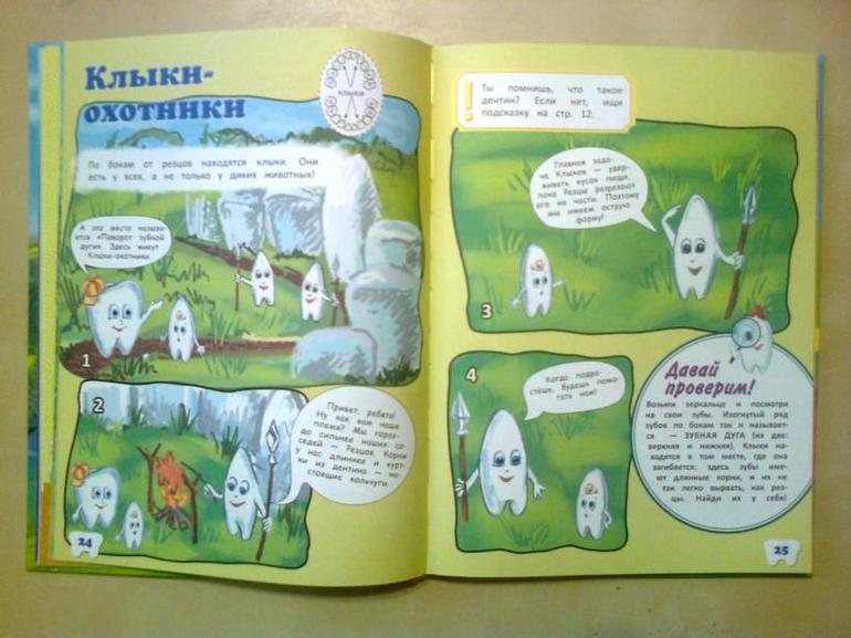 5) Подача материала. Все взаимосвязано, и цель книги - привить детям стоматологическую культуру. Почему так здорово иметь здоровые зубы? Для чего они вообще нужны?