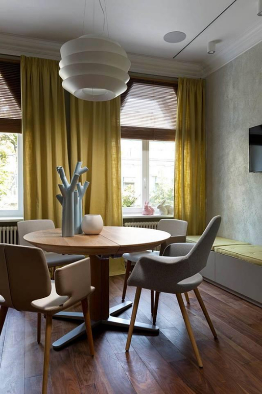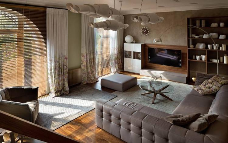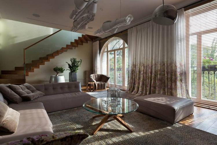 Особого внимания заслуживает дизайнерское решение касательно света. Благодаря таким деталям, как шторы и жалюзи, можно играть с освещением, меняя "настроение" интерьера, создавая как мягкое, приглушенное освещение, так и позволить яркому солнышку наполнить все пространство ярким светом.