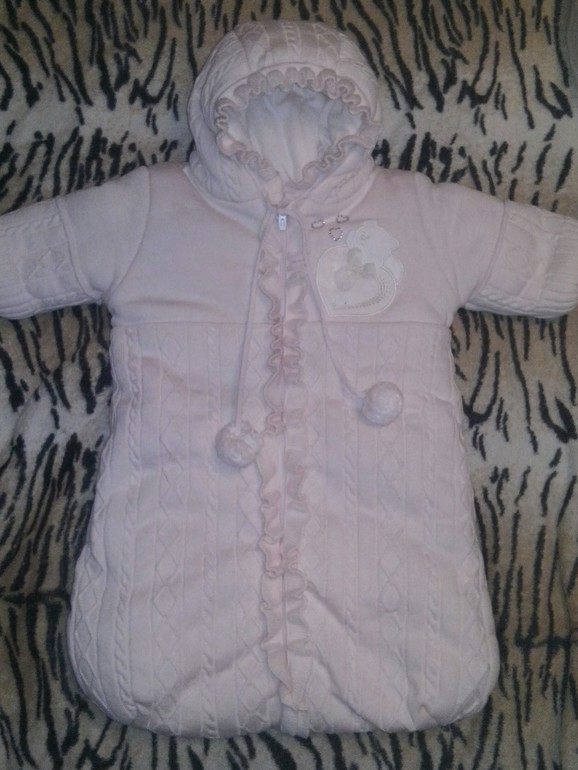 Продам вязаный конверт с ручками на выписку на теплую весну/осень от +15,очень красивый,состояние нового (одели на выписку),размер 62,нежно-розового цвета за 1500 руб.
