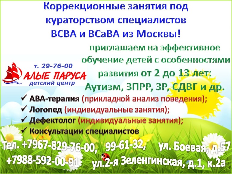 Также предлагаем дополнительные услуги: Логопед, Дефектолог, АВА-терапия, Подготовка к школе, Раннее развитие, Английский язык, Китайский язык, Изо-студия и др.