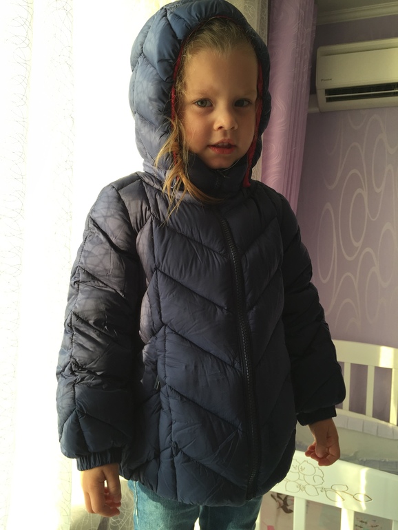 У нас перехап, не успеваем все одевать. На холодную осень, теплую зиму. Пух. Цвет - синий, подклад фуксия.