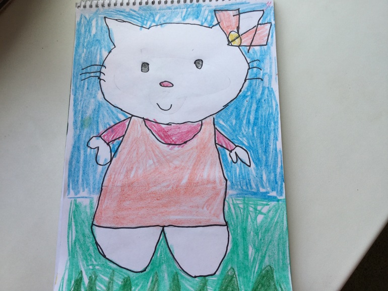 Из японских мультиков-аниме нашим фаворитом стал Hello Kitty. На ютюбе много видеоуроков с пошаговыми инструкциями рисования таких котиков, одним из них мы и воспользовались: