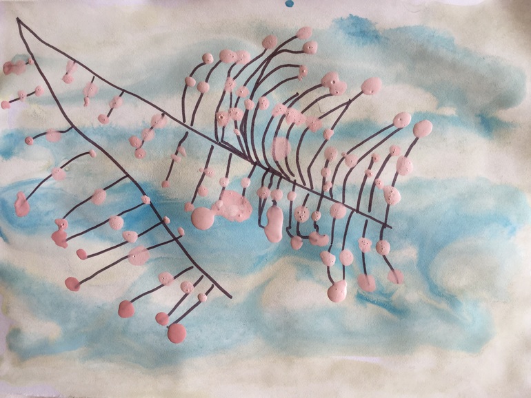 После просмотра мультика тетушки Совы о японском художнике Коцусиге Хокусае, под впечатлением его работ рисуем акварелью цветущую сакуру на фоне весеннего неба.