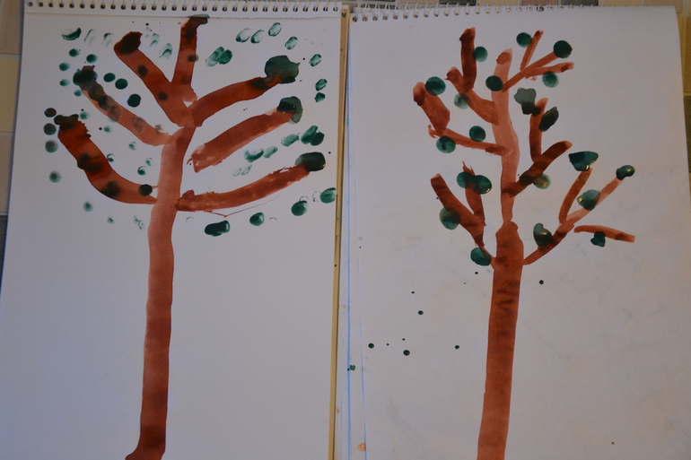 Посмотрели мультик о бесплодной смоковнице, а затем нарисовали свои деревья