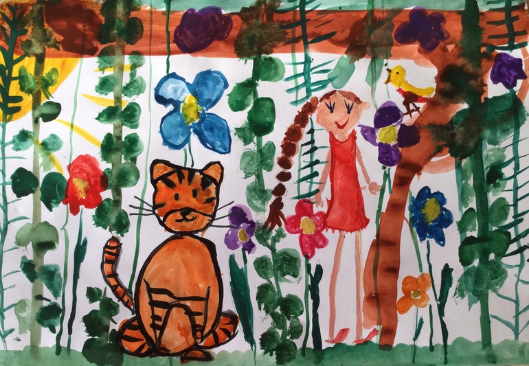 Затем дети нарисовали себя в джунглях и отправили работы на