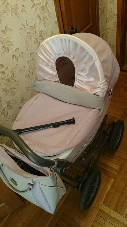 Так же продается коляска Inglesina Vittoria Сamelia. Цвет нежно-розовый с бежевыми вставками,имеется большая сумка для мамы, также в комплект идет дождевик, москитная сетка, два матрасика (кокосовый по-жестче и поролоновый по-мягче), насос для колес. Состояние - хорошее! Сравнительно большие внутренние размеры (78х35х24) обеспечат комфортное пребывание в коляске детеныша. На купол нашиты самодельные, относительно плотные, шелковые вставки, они защитят дитя от ветра. При желании, их можно снять. Они крепятся на резинку и пуговицы. Коляска легко заезжает в маленький лифт и отлично проходит по пандусам. Цена - 7000 руб.