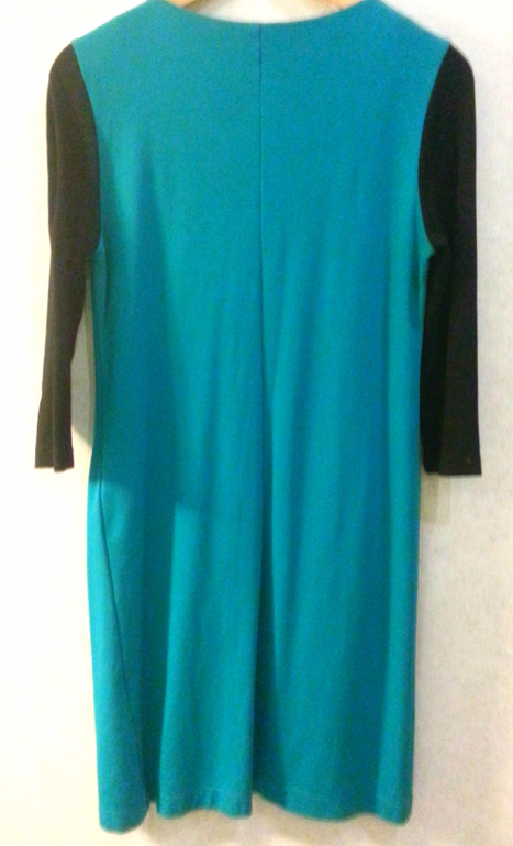 Цвет бирюзовый, рукава черные. Длина рукавов ¾ четверти.