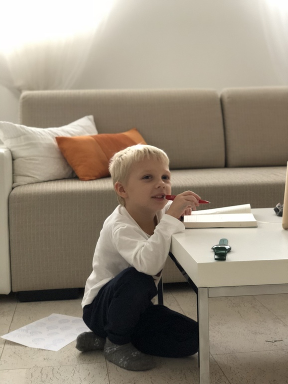 Я уж науке не мешаю,пусть рисует.Нашел сантиметровую ленту,пришлось о см,дм,мм рассказывать,измерена вся живая и неживая природа.Сейчас я честно говорю-не знаю,полезли искать,лезем,находим,потом рисуем двигатель ракеты,самолёта,кофеварки(пусть будет),потом Илья по рисунку что-то мне рассказывает,а я его должна снимать,это мы обучающие программы для малышей делаем,я необучаемая,к слову))Иногда он перевоплощается в путина и требует говорить вы.Английский в саду не прошёл бесследно для моей психики,между делом поинтересовался хау олд,на мой честный ответ,присвистнул-ни фига себе,только ты не расстраивайся...