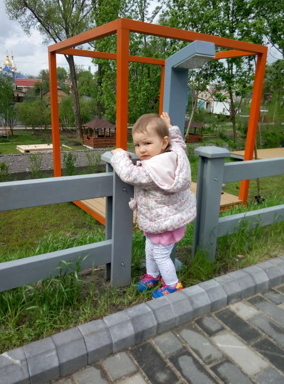 Пишу сечас, пока малышка спит. Вызвали врача на дом, температура 38 и кашель внизу, хриплый такой. Поэтому домашний режим, может, после обеда выйдем, погуляем подальше от площадок.