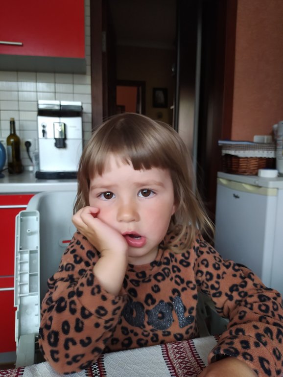 Любознательная, активная, спит около 3х раз, идёт к бабушкам-дедушкам на руки без проблем.