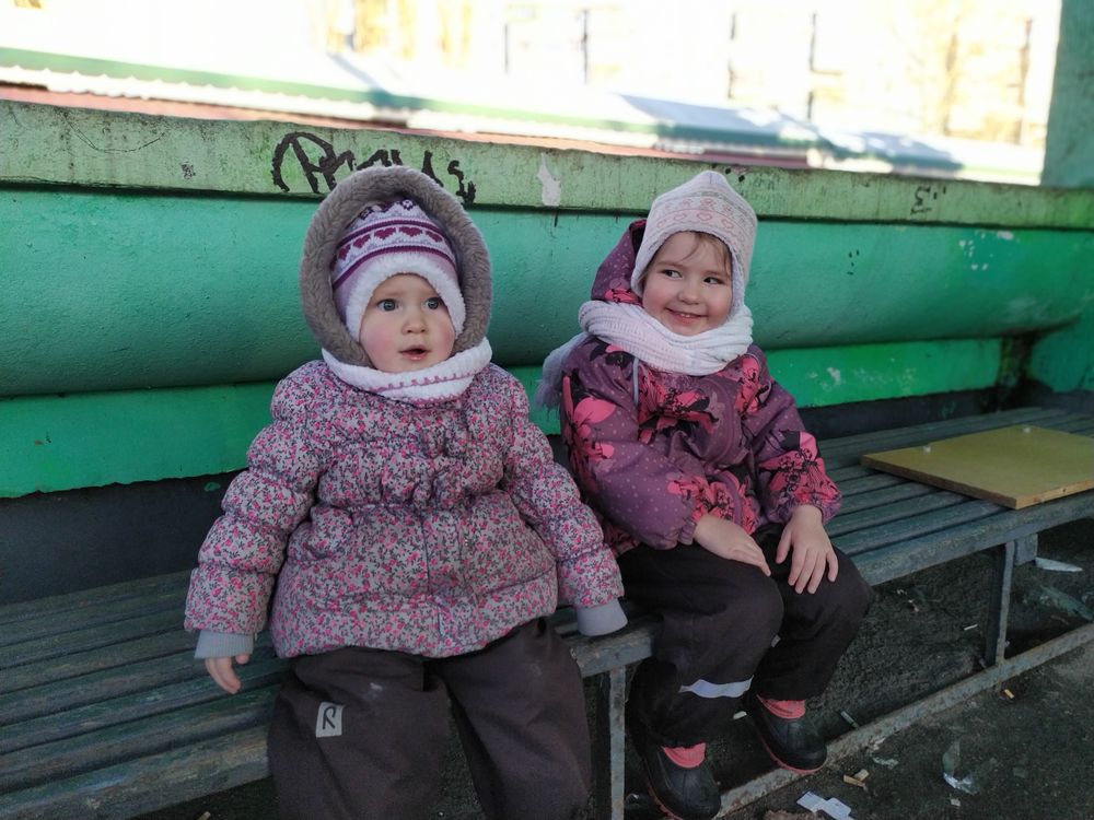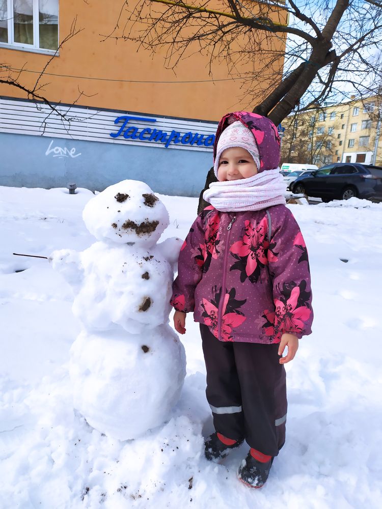 Женя же за зиму сильно выросла, вот говорят, что за лето, а она за зиму. Осенью такой малышкой была, а сейчас руки, ноги длинные стали. Круто!