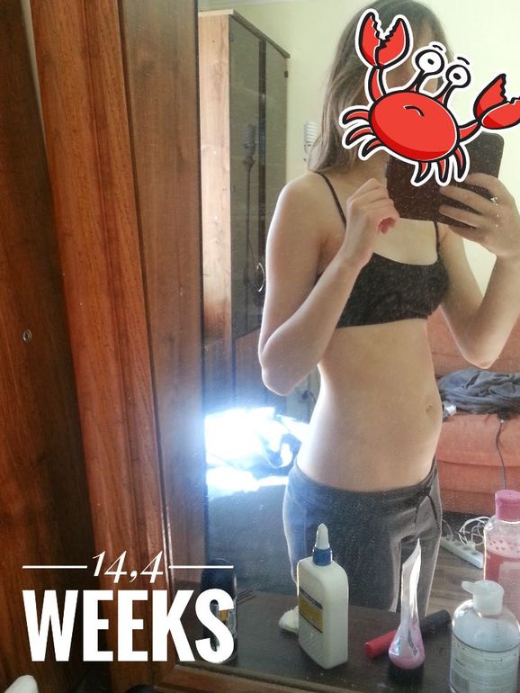 Животик начинает уже выпирать слегка, по утрам он даже пугает меня своей круглостью и пушистостью, ха-ха, посмотрим, что будет дальше!