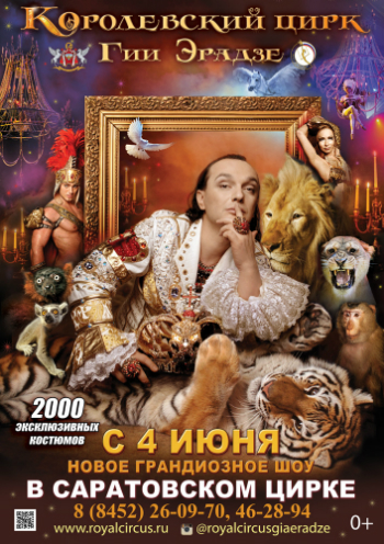 С 4 июня пройдут гастроли Королевского цирка Гии Эрадзе. Уникальность циркового шоу нового поколения в его масштабе, грандиозных авторских декорациях, не имеющих аналогов в мире, мастерстве артистов и невероятном количестве дрессированных животных. Сказочная мистерия длиться 2 часа 45 минут, за которые 120 артистов и уникальные животные очаруют своим выступлением настолько, что каждому зрителю захочется попасть на представление снова и снова! Добро пожаловать в Королевство сказочных грёз, в волшебный мир цирковых иллюзий, который сделает каждого зрителя по-настоящему счастливым! Подробнее по тел.: 26-09-70, 27-84-33