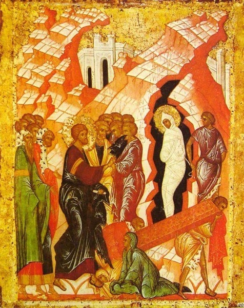 В расположенном недалеко от города Иерусалима селинии Вифания жили две сестры, Марфа и Мария, и их брат Лазарь. Эту семью очень любил Иисус Христос. И вот однажды Лазарь заболел и умер. Когда пришел в это селение Иисус, прошло уже четыре дня с тех пор, как умер Лазарь. Спаситель подошел к пещере, в которой положили тело умершего, и громко сказал: "Лазарь, выйди из пещеры!" И на глазах удивленных людей вышел живой Лазарь