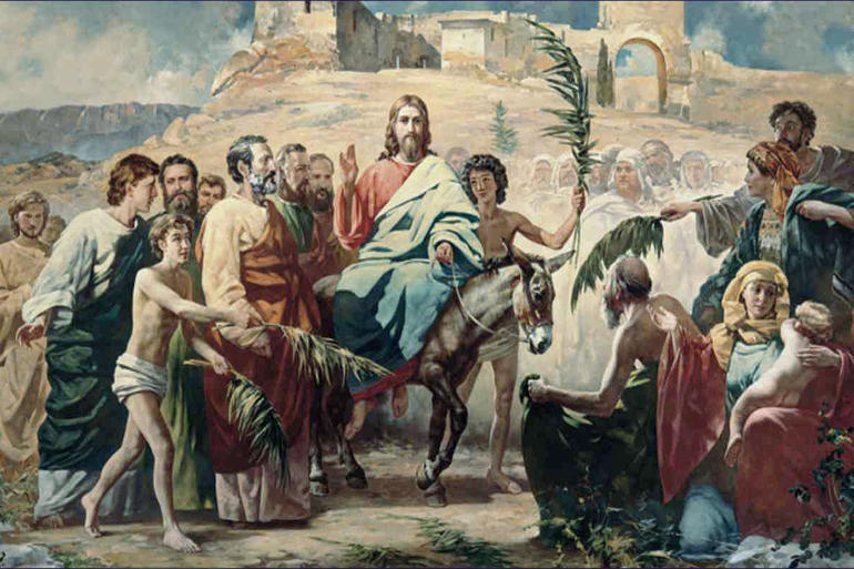 Спаситель знал об этом. Он шел со Своими учениками к Иерусалиму. В небольшом селении у ворот столицы Он велел ученикам найти и привести молодого ослика для того, чтобы въехать на нем в город.