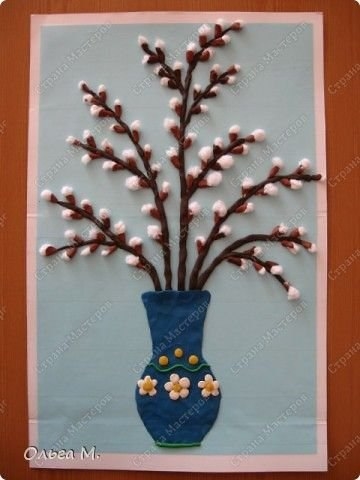 Воспитатель предлагает детям рассмотреть веточки вербы. Принесенный букетик после занятия можно будет поставить в православном уголке группы.