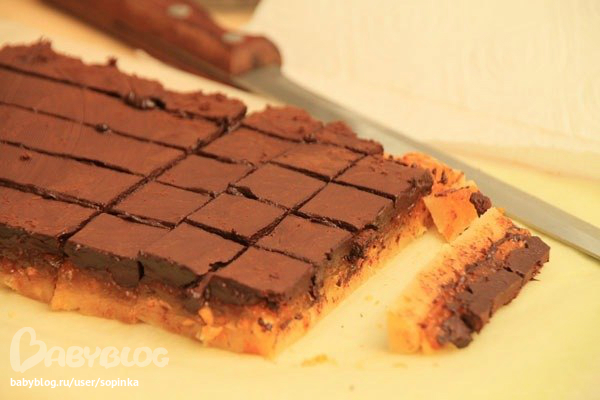 В высокую емкость налейте очень горячей воды (можно кипяток), подготовьте бумажную салфетку. Перед каждым разрезом нож опускайте в горячую воду, чтобы металл хорошенько прогрелся, насухо вытирайте салфеткой и аккуратно разрезайте конфетную заготовку.
