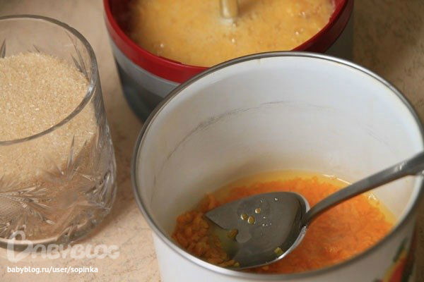 Пока варятся корочки, очистите апельсин, дольки освободите от прозрачных плёнок и получившуюся мякоть разотрите блендером. В кастрюльку с корочками вылейте сок и стакан сахарного песка. Положите гвоздику и на маленький огонь ещё на 20 минут.