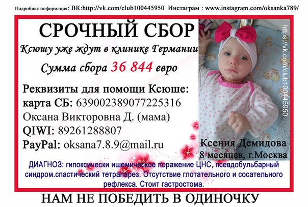 Девочки, напишу немного про Ксюшу, с просьбой для которой обращалась тут ко многим помочь распространением информации!