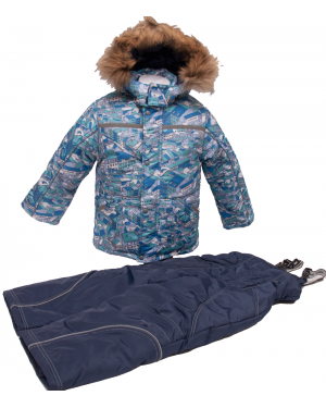 Очень теплый костюм для мальчика. Подклад: хлопок 100% + шерстяной мех, утеплитель: куртка 350 гр, полукомбинезон 250 гр, опушка: енот. Температурный режим: до -45. Костюм представлен в двух цветах.