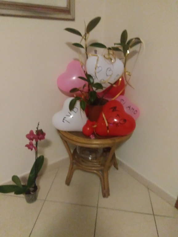 Он мне подарил,я с работы пришла и мой любимый цветок и шарики подписаные,я честно говоря не ожидала,он у меня не романтик совсем и были в ресторане рыбку ели